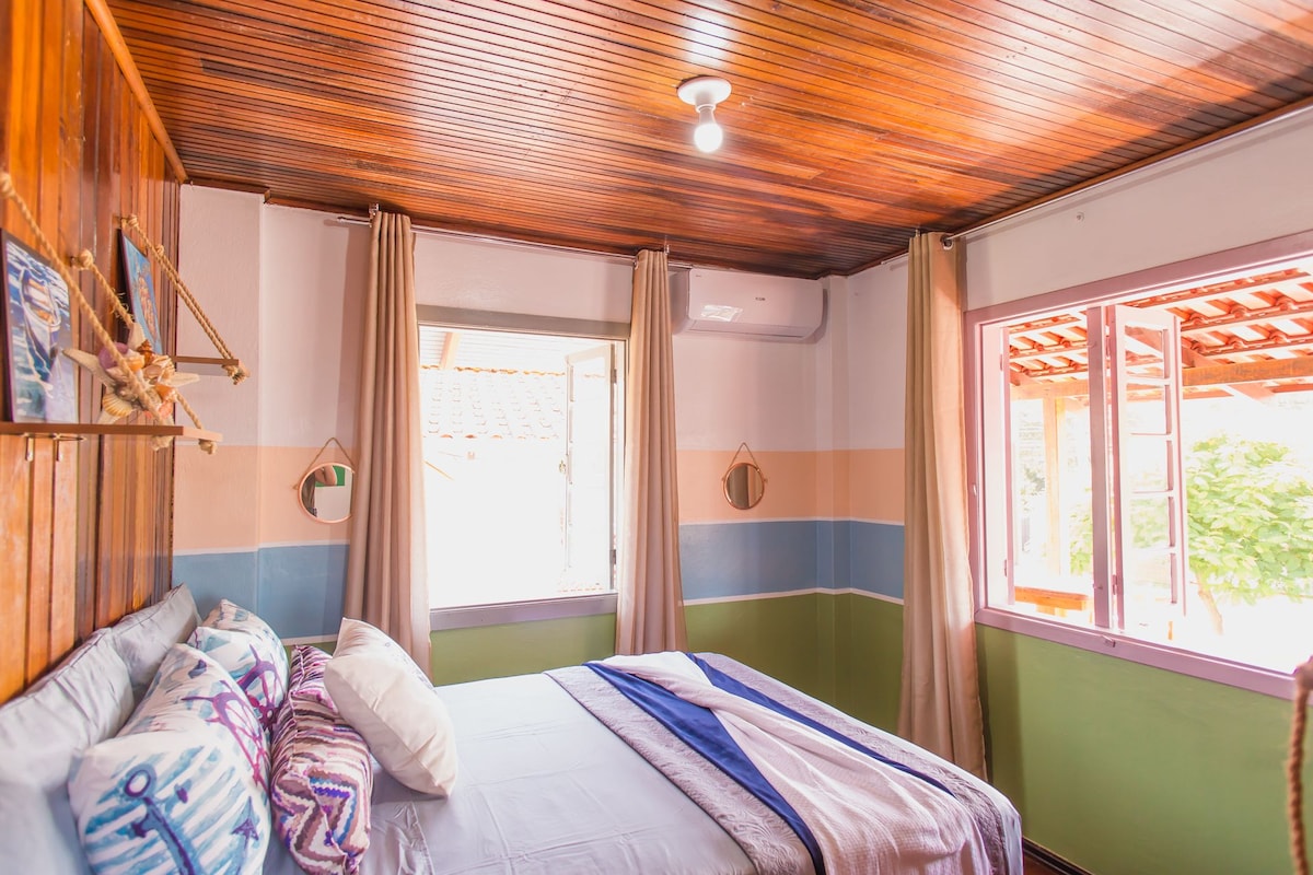 Imagine chegar em um loft cercado por um jardim vivo, com grama macia, flores coloridas e detalhes em madeira reaproveitada que dão alma ao espaço. Um cantinho de paz onde a brisa fresca do mar, a apenas 5 minutos a pé, atravessa o quintal e acalma o corpo depois de meses de rotina intensa. Aqui, cada detalhe convida você a respirar fundo, desacelerar e transformar sua estadia em um merecido descanso. E, quando quiser explorar, o Beto Carrero World está a apenas 10 minutos de carro.