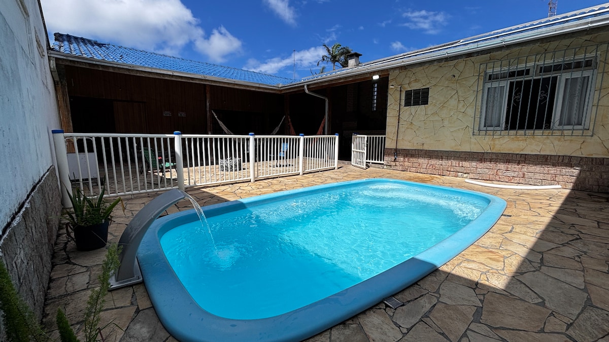 Casa de Praia c/ 1 suite + 2 quartos, 3 bwc, Privativa, ideal para reunir a familia, a 300m da praia e 500m do Parque Beto Carrero. Ar condicionado, 2 camas box casal e 1 cama box queen. 1 cama solteiro + 1 sofa cama e 1 colchao solteiro auxiliar. BWc interno e externo, sala de estar/jantar, TV Smart, cozinha equipada. Area externa mobiliada, mesa de sinuca, piscina, churrasqueira e rede para uma soneca! Estacionamento no local. Cadeiras de praia e guarda sol disponíveis no local.