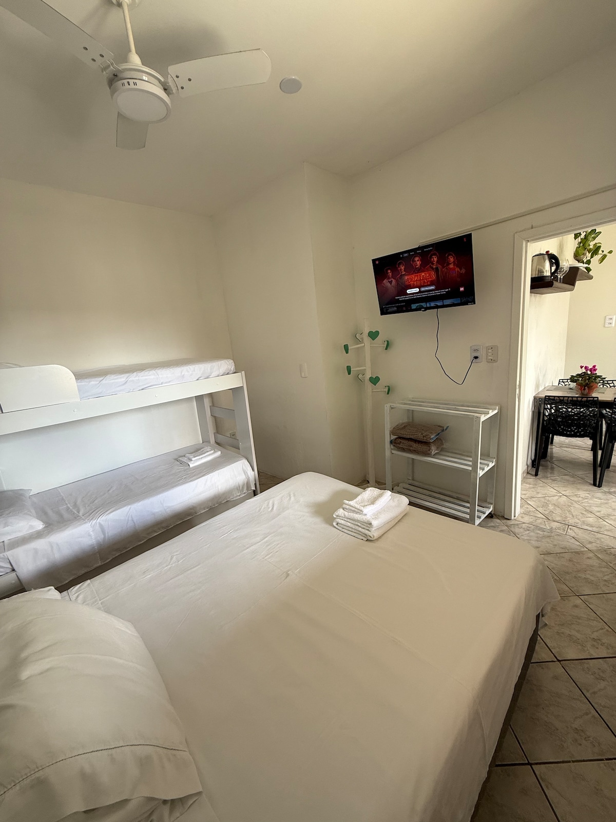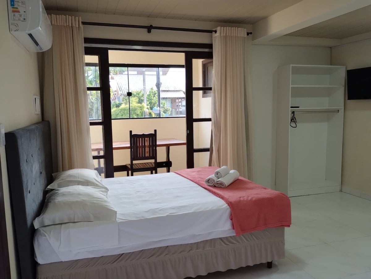 Kitnet/Studio. Possui uma cama casal normal e um colchão auxiliar de solteiro. Estamos a 500 metros do mar e a 7 minutos do parque Beto Carrero World e próximo a lindas praias, bares, restaurantes, farmácias e supermercados. Aceitamos o seu pet também.. :)