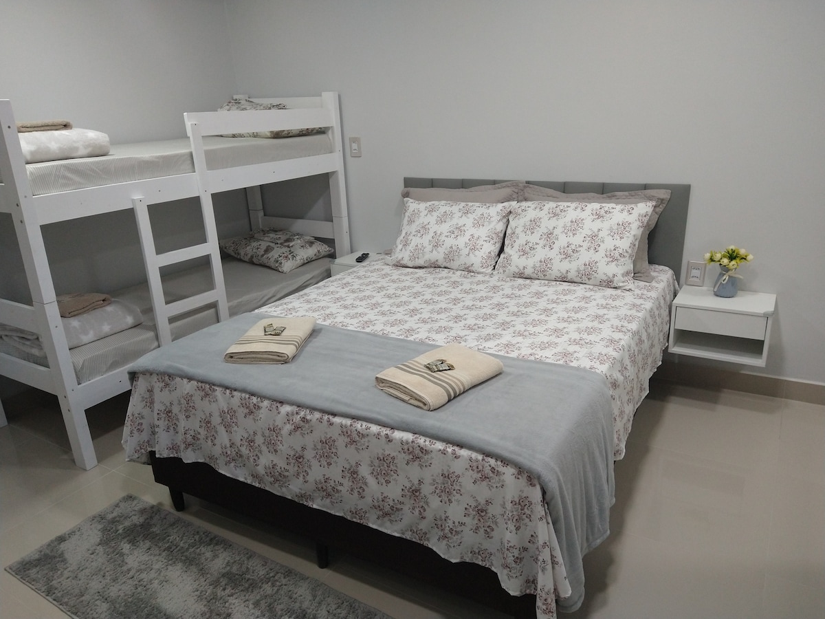 Este anúncio refere-se à casa SALMÃO - Piso TÉRREO. Casa moderna e aconchegante com quarto e sala com ar condicionado, banheiro, cozinha, TV Netflix, WI-FI, roupas de cama/banho e 1 vaga de garagem. Fica a 400 m do parque Beto Carrero, deixe seu carro na garagem e economize o estacionamento do Parque, você vai e volta tranquilamente a pé. Próximo à praia (aprox. 600 m), descendo a rua você estará na belíssima Praia de Armação. Desfrute ainda das 19 belas praias de nossa cidade. Comércio próx.