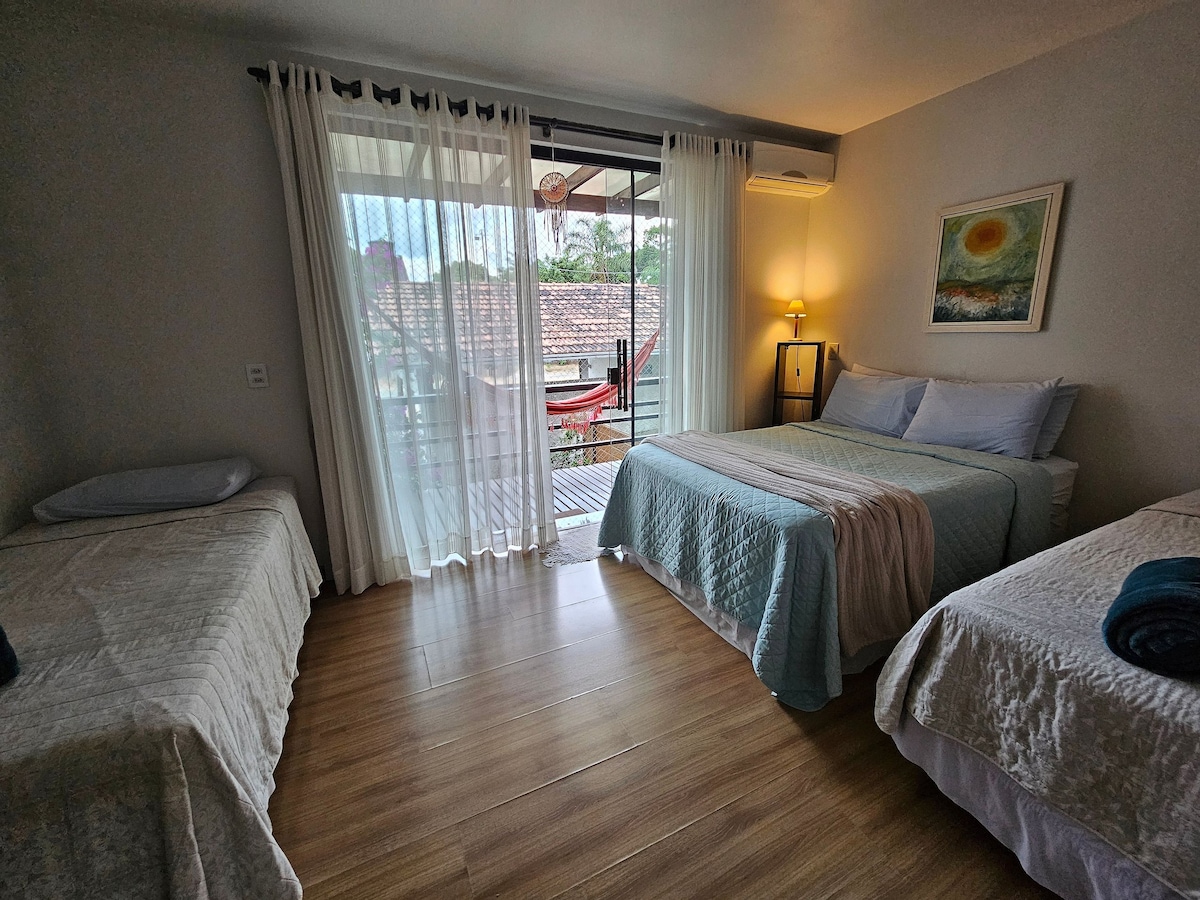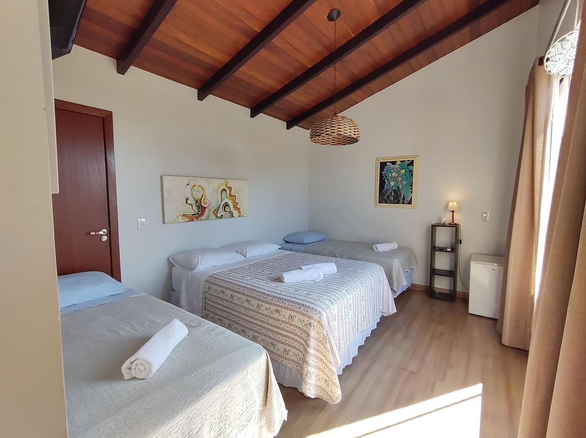 A Casa da Flor possui 3 suítes, sendo que elas podem ser contratadas por outras famílias! Elas são equipadas com TV ( Smart ), frigobar, ar condicionado, secador de cabelo e banheiro privativo. Na sua estadia está incluso: um delicioso café da manhã ( estilo continental ), servido diariamente das 8hrs às 10hrs, roupa de cama e banho ( para troca/reposição é cobrado taxa adicional ). Aqui você completa tanto o nascer quanto o Pôr do Sol, com uma vista incrível !!