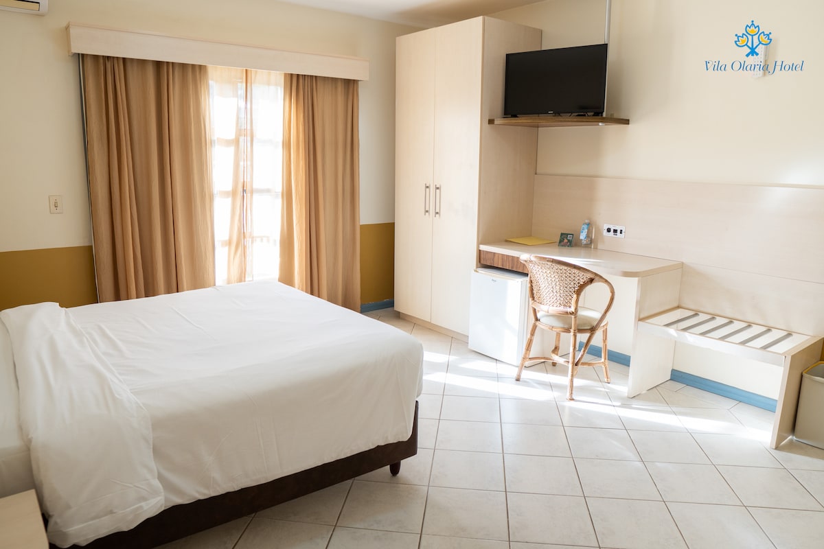 A acomodação no Hotel Solar Pedra da Ilha oferece conforto e sofisticação à beira-mar. Localizado em frente ao Beto Carrero, com vista para o parque, o quarto possui decoração elegante, cama confortável, ar-condicionado, TV e Wi-Fi gratuito. Ideal para relaxar, conta com varanda para apreciar a vista e um ambiente tranquilo. O hotel dispõe de piscina, sauna, academia, restaurante e serviço de praia, perfeito para uma estadia inesquecível.