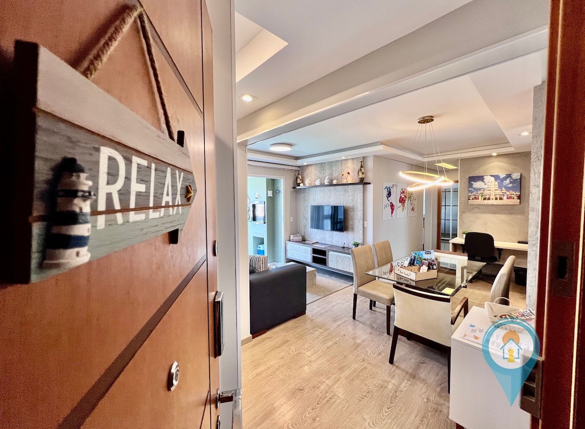 Seu aconchego com 2 quartos e 2 banheiros em condomínio Home Club! Apto fica em condomínio fechado com ótima estrutura de lazer e segurança. Próximo a praia e ao Parque Beto Carrero. Nos arredores você encontrará Supermercado, Restaurante, Pizzaria, Hamburgueria e Pastelaria. Desfrute do conforto de um apartamento bem arejado, com duas sacadas, uma delas com churrasqueira. São 2 quartos, sendo 1 suíte, todos equipados com Ar condicionado, roupas de cama e toalhas.