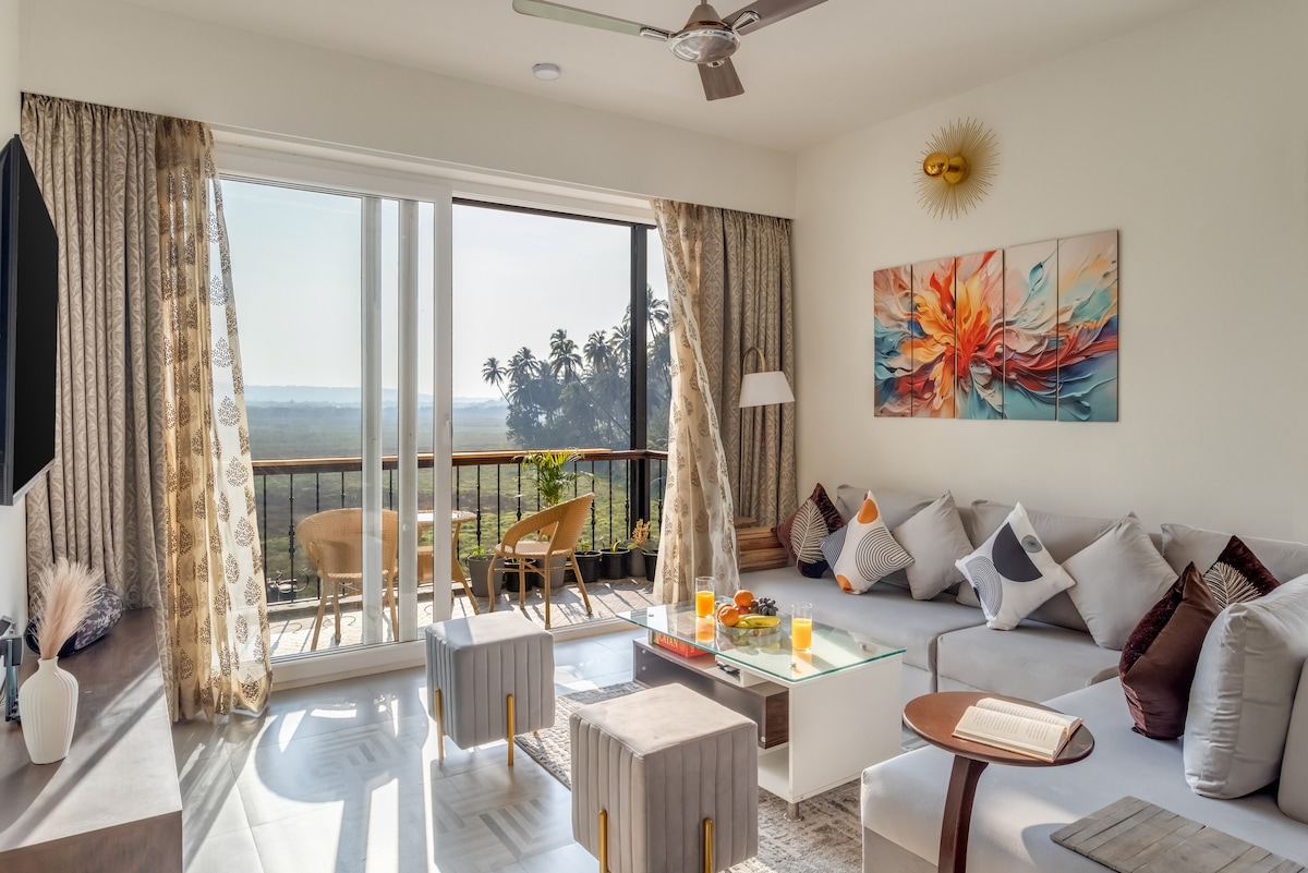 At Ananta Collective, Experience North Goa at its finest in this beautifully designed 1BHK luxury apartment nestled in the serene neighborhood of Nerul, just minutes away from Candolim, Coco, and SinQ Beach. Step into a world of modern interiors, elegant finishes, and thoughtful details that blend comfort with style. The apartment features a spacious living area, a fully equipped kitchen, and a cozy bedroom with premium bedding — perfect for couples or small families seeking a relaxing getaway.
