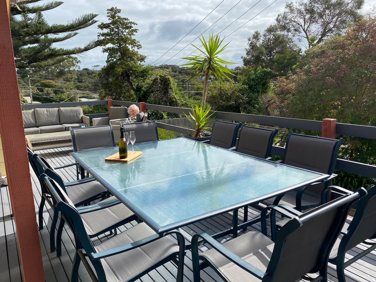 Perfect for couples! Enjoy a romantic getaway in the comfort of this gorgeous indoor-outdoor living space with uninterrupted views & sliding doors open to enjoy the sea breeze. The private deck is perfect for that quiet morning coffee. Unwind while taking in the stunning 'Sunset Views'. We offer Netflix & wifi. Linen & bath towels. 5 minute drive to Peninsula hot springs, Alba. beach's & shops! Access to the cottage is via stairs, we provide one park. Sea Store cafe 5 minutes walk away.