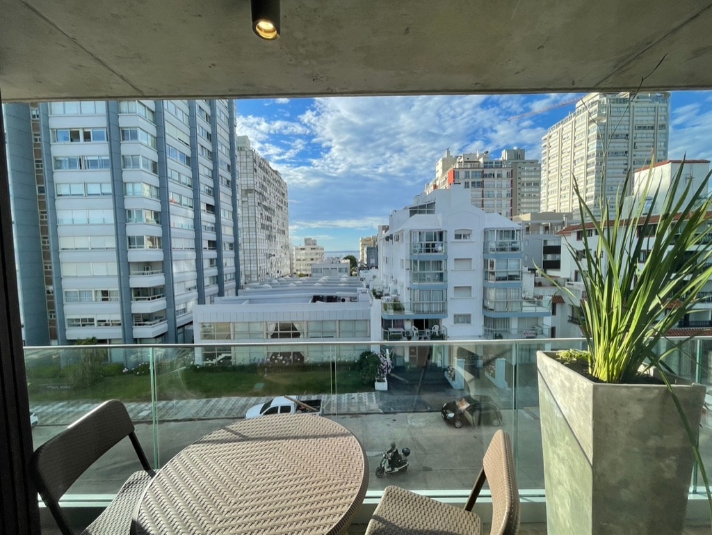 Moderno apartamento para 2 personas totalmente equipado con espectacular vista al mar y la península con 2 balcones, situado a cuadras del centro y de las playas mansa & brava. Incluye el uso de cochera propia, amenities de alta categoría como piscina interna y externa, sauna, gimnasio, business lounge y recepción atendida 24h. Ideal para relajarse y disfrutar de Punta del Este durante todo el año o combinar descanso y trabajo ya que dispone de una conexión rápida de internet (200 Mbps).