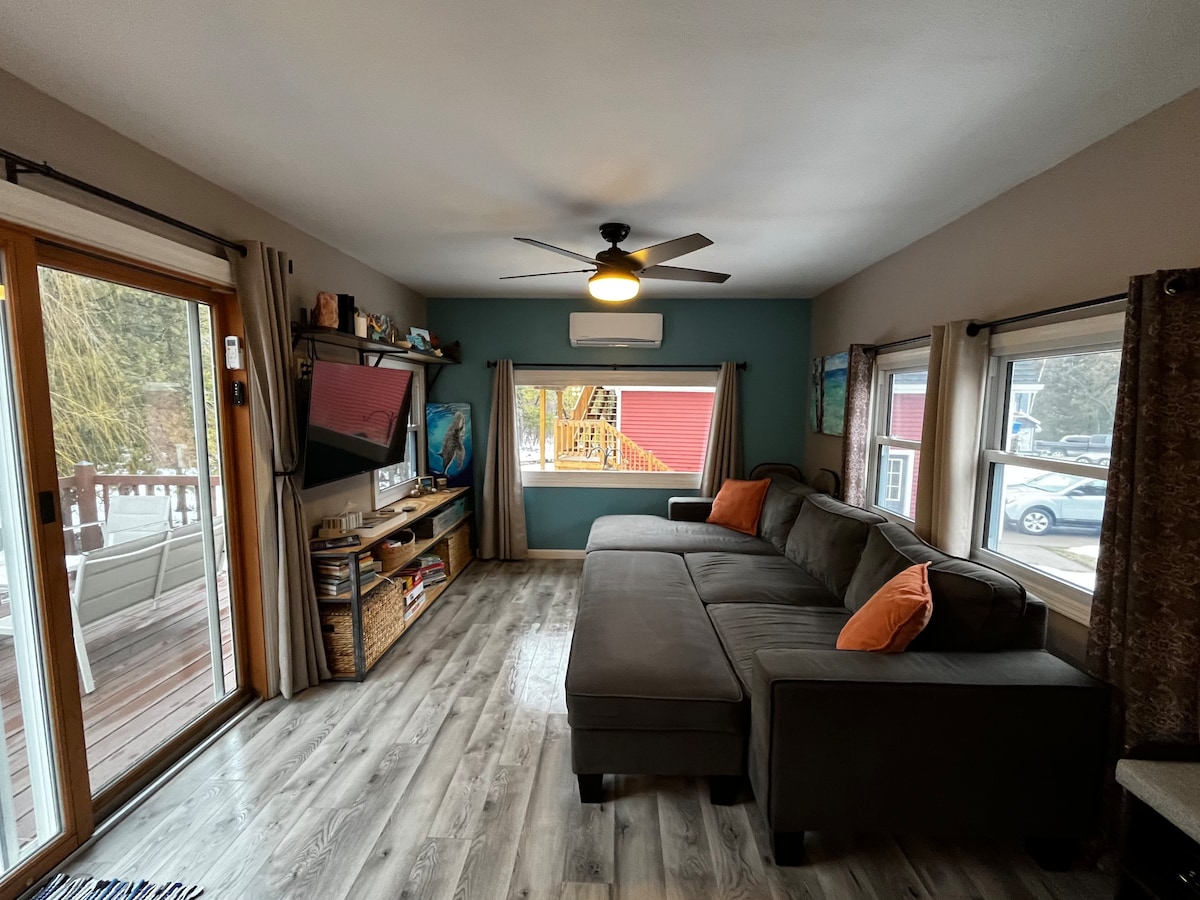 Unwind in our charming, sun-soaked dog-friendly loft in beautiful Traverse City! This clean and cozy space features a brand-new king bed, fully equipped kitchen, fast WiFi, and in-unit washer/dryer—perfect for extended stays or working remotely. Your furry friend is welcome too! Located just steps from local beaches, boutique shops, and top-rated restaurants, with easy access to all of Traverse City, downtown, and Old Mission Peninsula. A perfect romantic getaway or outdoor adventure hub!