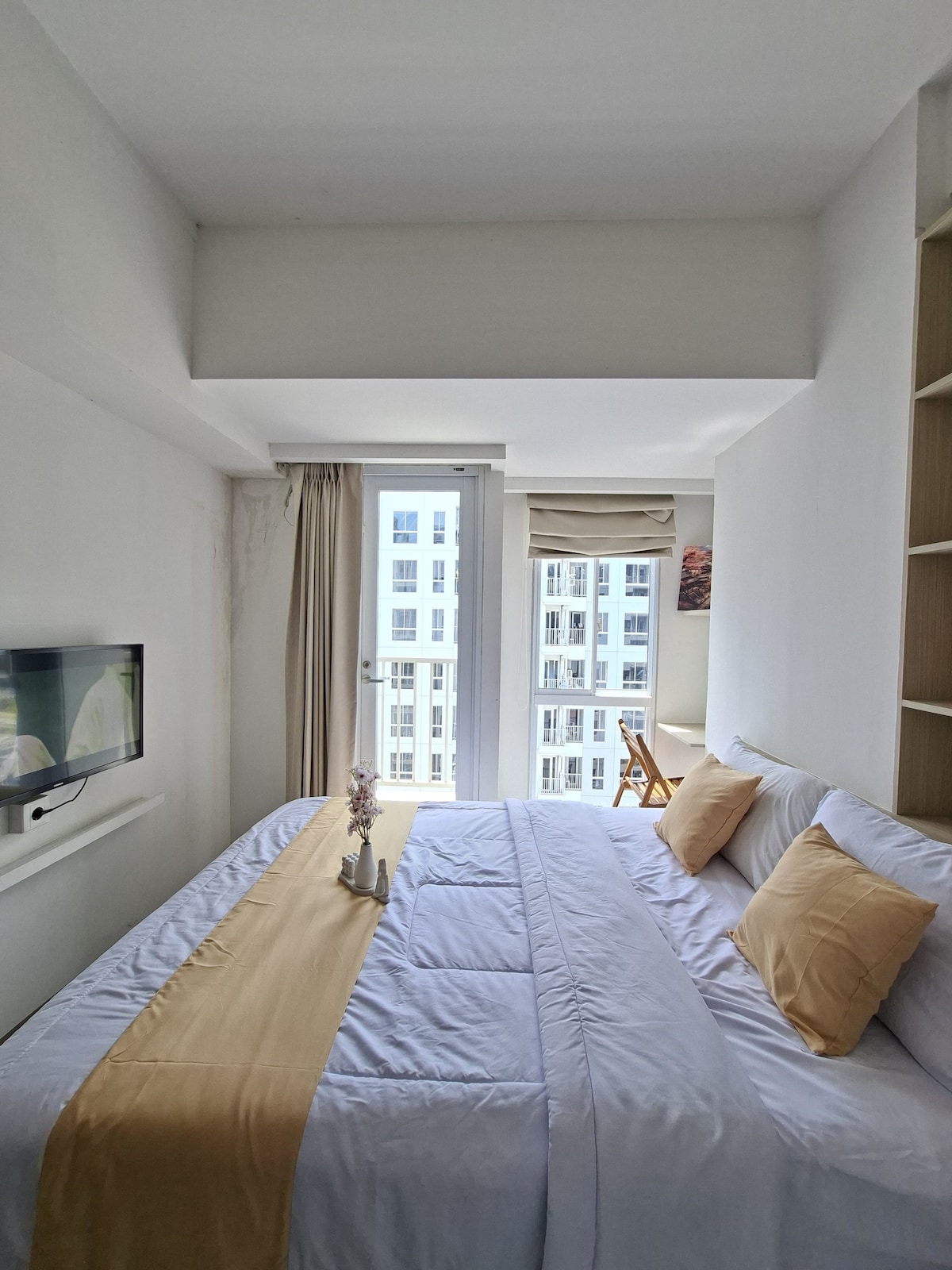 A spacious, cozy 1-bedroom apartment with a living room and balcony at Citralake Suites, West Jakarta's ideal lakeside getaway. Conveniently located just minutes from the Airport, PIK, Puri Indah and Sunset Avenue, it’s easy to explore the city. Step outside and you’re just a 1-min walk from Ciffest, a lively dining area with plenty of food options, supermarkets and ATMs. Our 1 BR unit provides a luxurious and comfortable space for up to 3 guests, with a kitchenette, Free Wi-Fi, and Netflix.