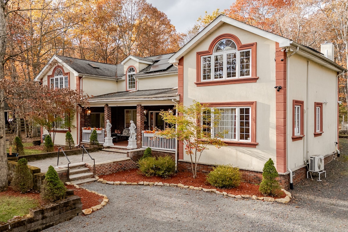 Escape to tranquility in our five-bedroom cozy, mountain retreat, located in the premier community of Bear Creek Lakes. This home is fully equipped with modern amenities including a spacious wraparound deck, a game room, and sauna and a cozy fireplace, perfect for evening gatherings. Guests can enjoy community amenities like a 160-acre lake, two sandy beaches, an Olympic-sized pool and various sports courts—all just a stone's throw from the scenic town of Jim Thorpe and the slopes of Jack Frost.