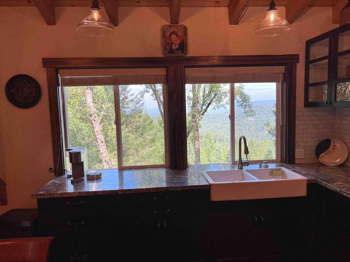 If you are looking for a peaceful and tranquil escape, you are looking at the right spot. Nestled beneath whispering conifers and oaks, this cabin boasts of beautiful mountain and valley views. Trails for hiking and premier mountain biking in the Tahoe National Forest; simply open your door and begin your adventure. Short drive to Nevada City and Yuba River; 45 minutes to ski slopes in the Sierras. The custom 600 sq. ft. private studio with a gas fireplace is fully equipped for up to 4 guests.