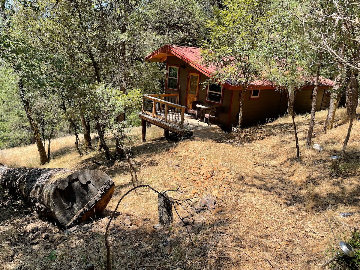 This is a private guest house which is adjacent to the owners home. It is nestled next to beautiful 100 ft cedar, dogwood & pine trees on 2 wooded acres. This 400 sq ft guest house has a full kitchen, living room with vaulted ceiling, bathroom with walk-in shower, one bedroom with a queen size bed. Bedroom has its own entrance to the large deck. There is a loft that can accommodate additional guests. Located just 3 1/2 miles from downtown Grass Valley and 5 miles from Nevada City, CA.