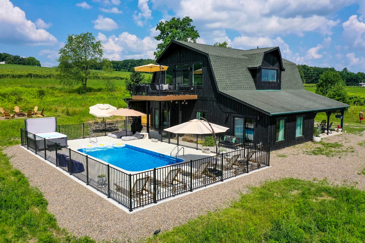 "The Farmhouse" is located in the heart of the Finger Lakes on the Keuka Lake Wine Trail. A restored 1800's farmhouse, it is close to the Village of Penn Yan, Keuka College, and Keuka Lake State Park and has amazing views overlooking Keuka Lake. The Farmhouse is on the same property as craft brewery and events venue, Abandon Brewing Company. Perfect for couples, families, groups, and furry friends (pets) who want to get away and enjoy the proximity to award winning wineries and breweries.