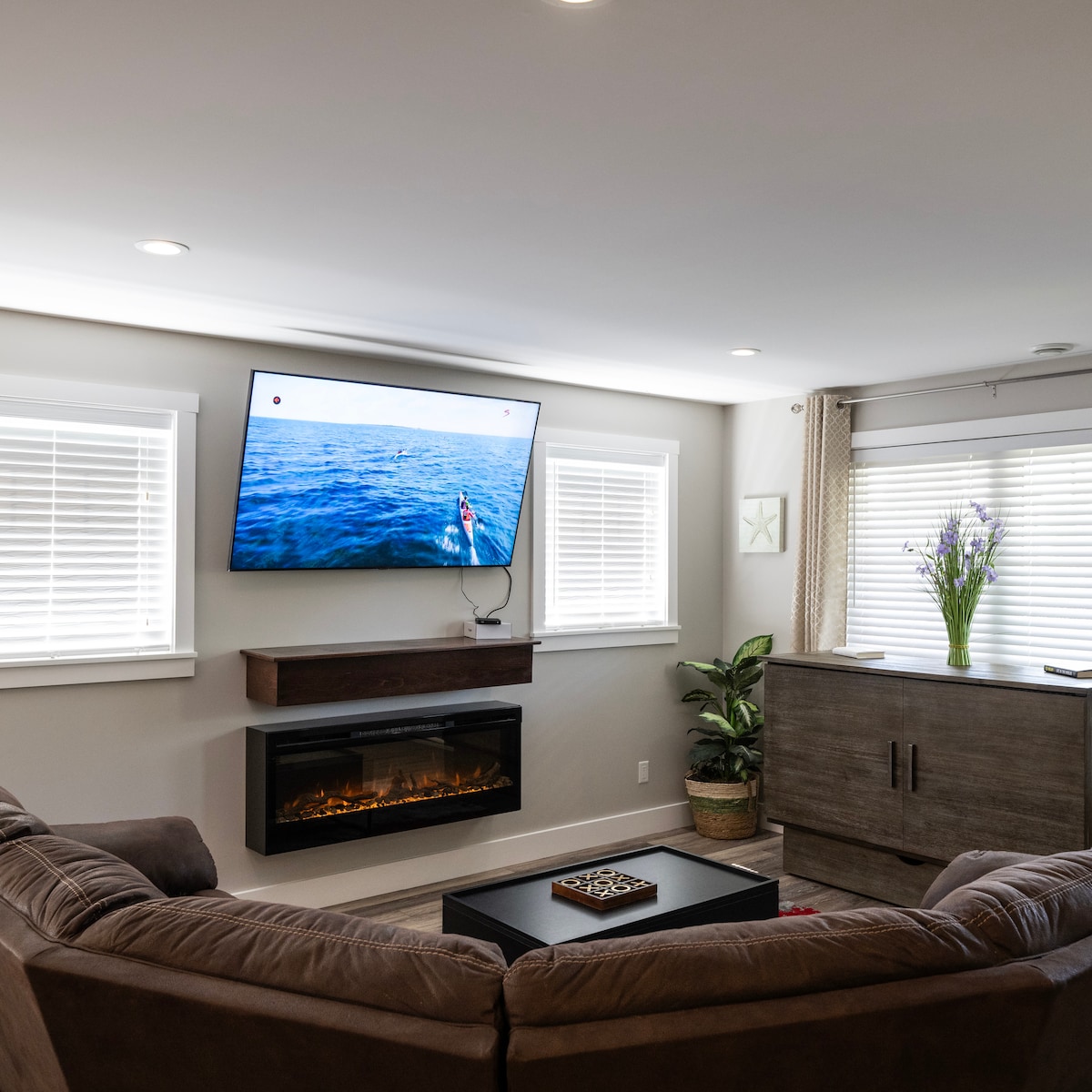 Nestled along this historic beachfront is this inviting lower-level apartment with breathtaking sunset views from the private pergola overlooking the water. Inside you’ll have everything you need for a relaxing stay with a fully equipped kitchen and coffee bar, a huge theatre screen with a popcorn machine, stylish dining, 2 bedrooms and a modern bathroom stocked with all the essentials. Walk just steps to the beach and only mins to charming St. Andrews with its great food and historic streets.