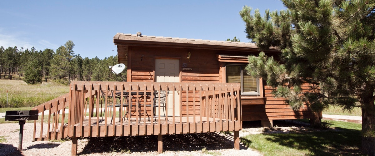Rustic pine sleeper cabin in the beautiful Black Hills. One queen bed with twin bunk beds. This cabin sleep 4-persons. Cabins do not include a shower, bathroom or running water inside. Showers and bathrooms are available for free use in main guest shower house. A great base for touring the area, with quick access to lakes, onsite stream for fishing, Mickelson Trail, 20 minute drive to Mt. Rushmore. Visit the Prairie Dog Taproom across the creek for a beverage and some food!