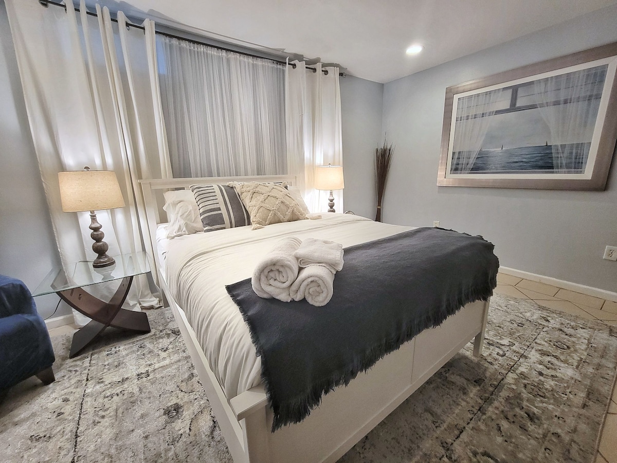 Introducing our brand new, impeccably clean, and delightfully modern private 1BR/1BA suite! Designed with both style and comfort in mind, this inviting space promises an unforgettable stay. Your exclusive retreat features a fully equipped kitchen, a luxurious bathroom, and spacious 55'' & 50" smart TVs for all your streaming needs. Enjoy complimentary high-speed WiFi, climate control with A/C and heating, and access to our guest laundry facilities—all designed to enhance your experience.