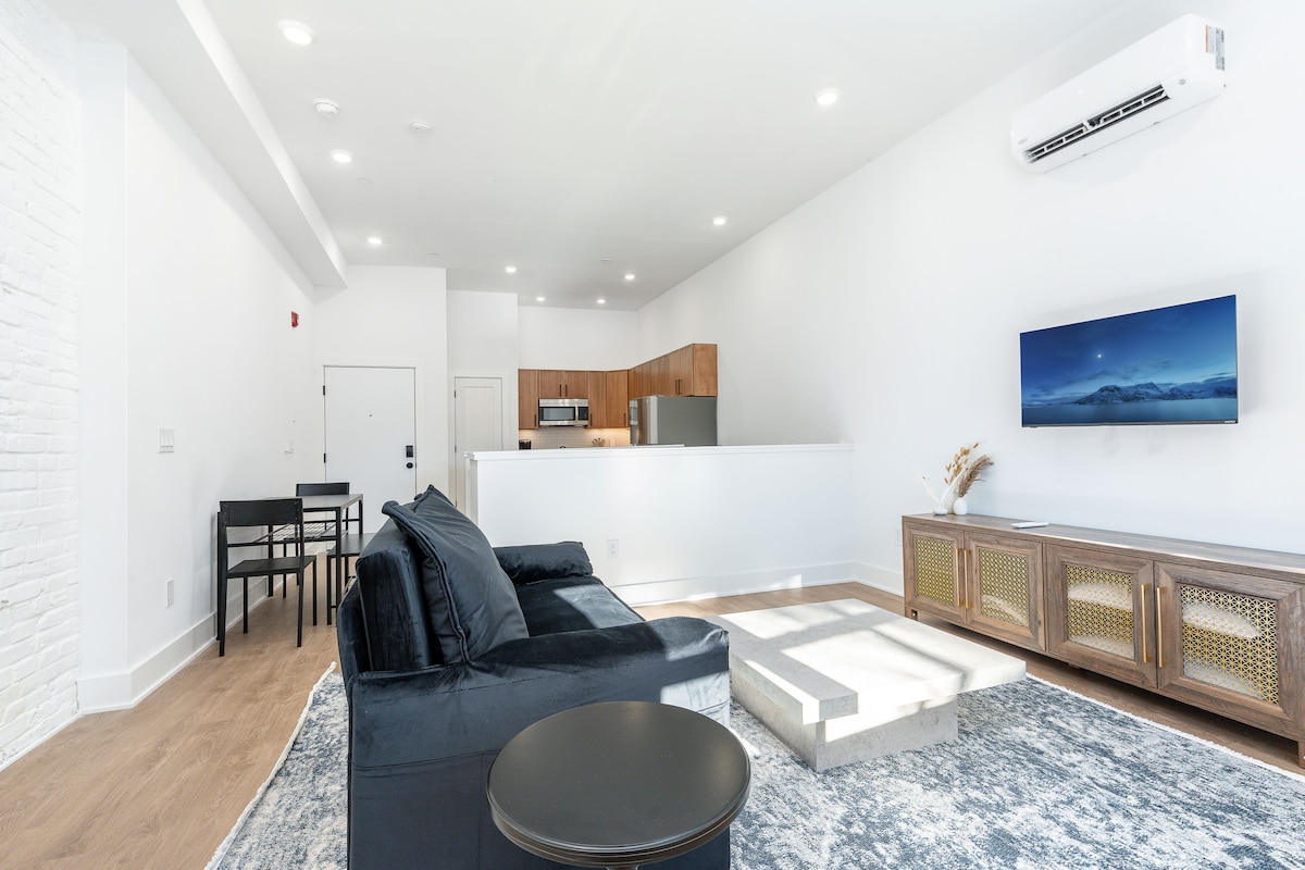 Introducing our brand new, impeccably clean, and delightfully modern private 1BR/1BA suite! Designed with both style and comfort in mind, this inviting space promises an unforgettable stay. Your exclusive retreat features a fully equipped kitchen, a luxurious bathroom, and spacious 55'' & 50" smart TVs for all your streaming needs. Enjoy complimentary high-speed WiFi, climate control with A/C and heating, and access to our guest laundry facilities—all designed to enhance your experience.