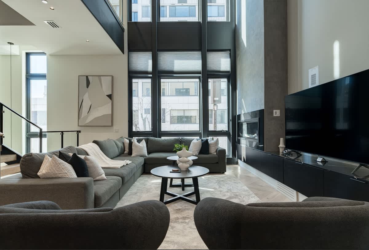 Stay in style at this modern Queen Village loft—a bright third-floor walk-up that blends historic charm with contemporary design. Soaring 20-ft ceilings in the living area and warm finishes create an inviting feel, while the open kitchen and dining area are perfect for nights in. Upstairs, enjoy a plush king bed, a stylish spa-like bath, and a private roof deck ideal for morning coffee or evening cocktails—steps from Philly’s best restaurants, cafés, and historic sites.