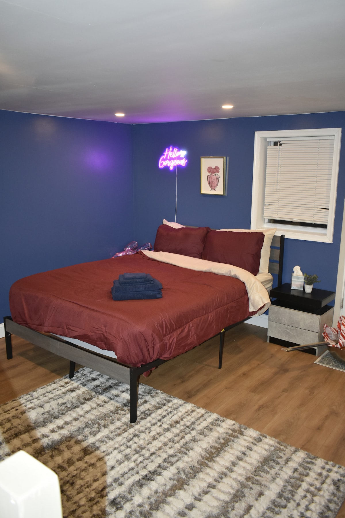 This private 1-bedroom suite offers a quiet, comfortable stay for couples, solo travelers, and business guests. The entire space is yours, featuring a queen-size bed, walk-in shower, streaming TV, and high-speed Wi-Fi. The kitchenette has a fridge, microwave, and coffee maker for easy meals. A dedicated workspace makes remote work simple. Best of all, you’ll have your own private, dedicated parking spot just steps from the entrance for added convenience.