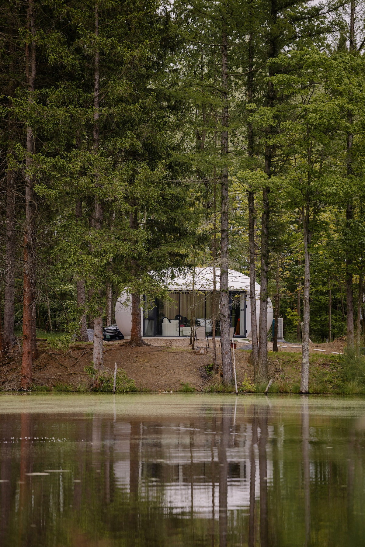 Escape to this unique round tiny home by a beautiful private lake, located on 350 private acres. Perfect for a cozy getaway, it offers a full kitchen, bathroom, and a serene bedroom with a large round skylight located directly above the queen-sized bed! Unwind in the Jacuzzi hot tub, enjoy the fire pit, or relax by the water. It is ideal for those seeking peace and nature, with kayaking and fishing right outside your door. Experience tranquility in this one-of-a-kind retreat!