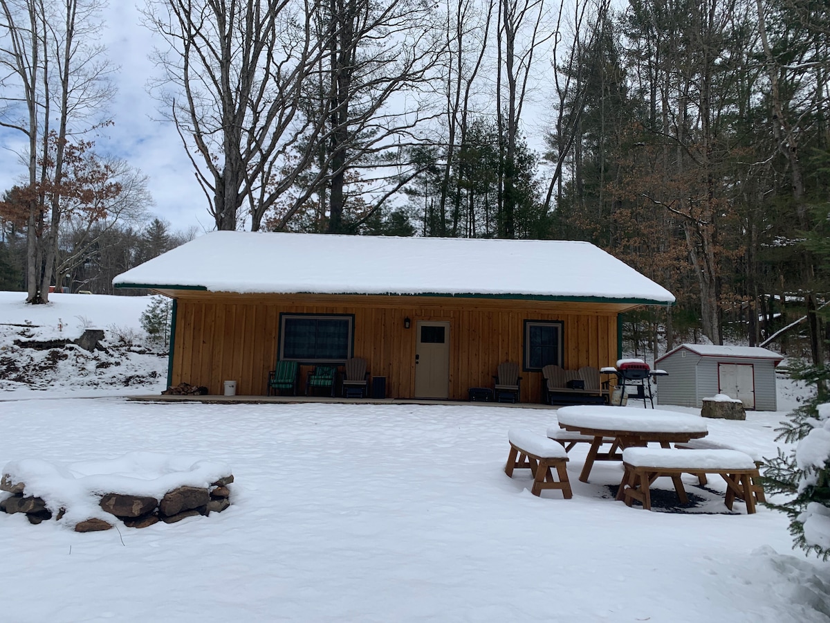 Set about a quarter mile off the road, our pet friendly solar powered vacation cottage is a perfect getaway for anyone trying to spend some alone time with nature! Guests have complete privacy inside the cottage with a full kitchen, two TV's, Wi-Fi, and a mini split system for heating and cooling. As well as exclusive access to the hot tub, fire pit and pond outside! We also have various shared hiking trails through the woods surrounding the cottage for campers and cottage guests to enjoy!