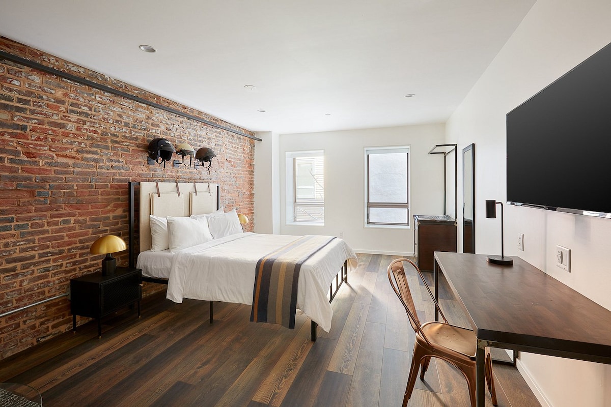 1 Bedroom, 1 Bath 1 Queen Bed Whether you’re here for work, play, or a little of both, this inviting Queen Room in the heart of Queen Village is the perfect spot to relax and recharge. Enjoy thoughtful touches like a workspace, a king-sized bed, and modern amenities — all in a stylish apart-hotel building that blends comfort with convenience. Note: This apartment is in a vibrant city neighborhood, and some city noise may be expected.