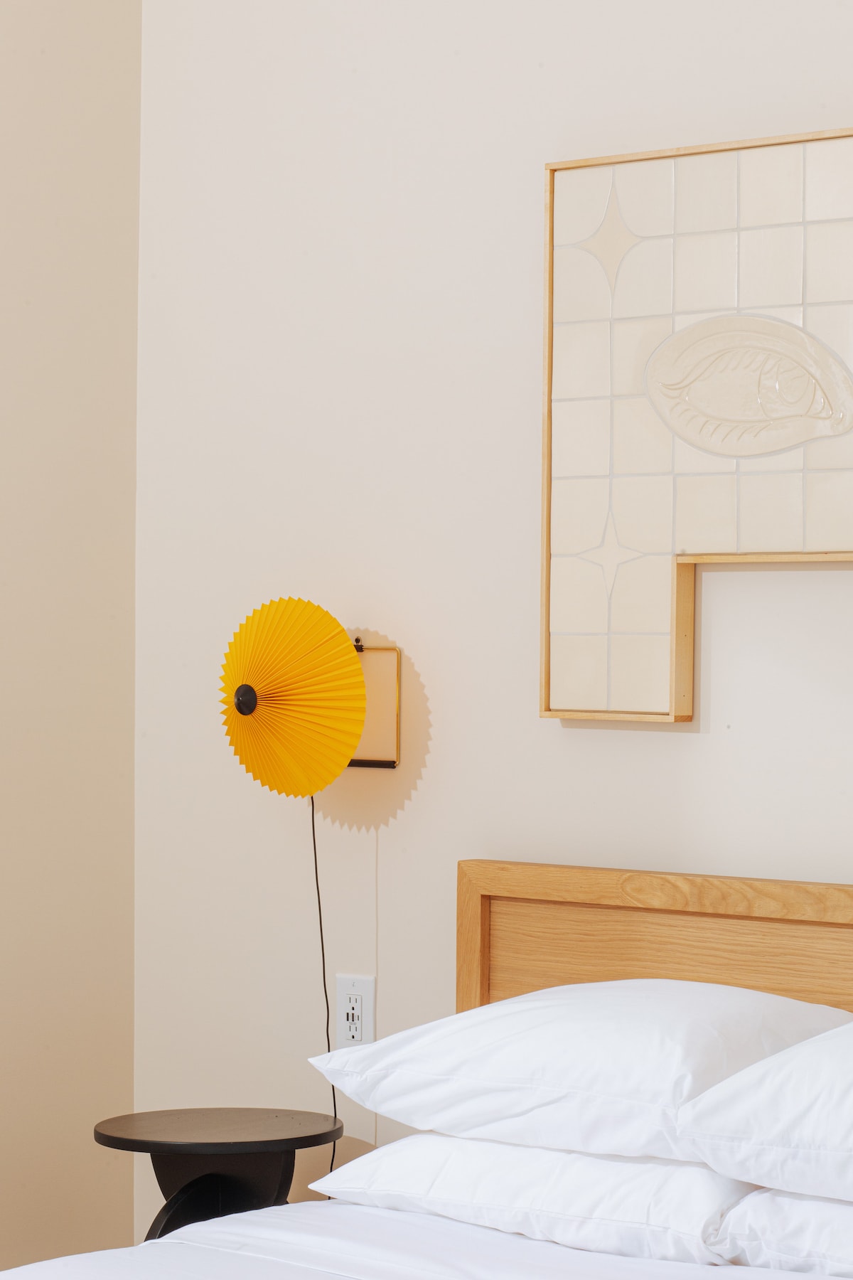 A versatile king suite perfect for couples and business travelers. Sunlight fills the living area, creating an inspiring space for work and leisure. Playful patterns like the domino printed wallpaper and curated artwork from local artists transform this room into a dynamic staycation destination. Designed for productivity, romance, and everything in between, your home away from home awaits.
