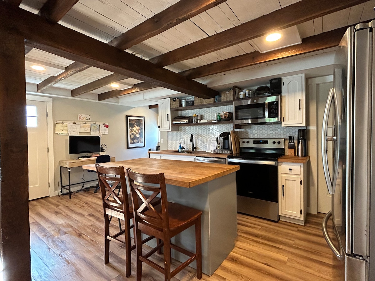 Relax with family, friends, or enjoy a solo retreat at this peaceful place to stay in the country. Chestnut House was built in the early 1940s, with Wormy Chestnut wood everywhere! It is a unique home, with an apartment built over a garage / wood working shop.. then connected to the main house later. This space available to rent is separate and fully functional from the main house where we live. Enjoy 2 bedrooms, 1 bathroom, full kitchen and living area.. along with the large outdoors!