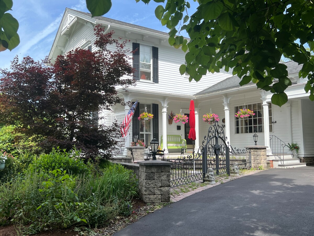 The Senator B&B is conveniently located in Mt Joy, PA. A very short drive to Lancaster, Hershey, York, and many wonderful attractions and restaurants. The home is 120 years old with tremendous charm and character. Over the warm months the grounds are teaming with flowers to enjoy. Feel free to enjoy the many common spaces to lounge and relax. Please note that this room is on the 3rd floor and does require steps. It is secludes and the only room and bathroom on the 3rd floor.