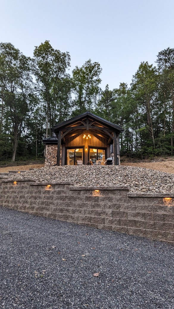 Tucked into the woods of the Texter Mountain, our little home is a custom built modern getaway. Its beautiful timber framework, high steel beams for suspension, and glass front makes for the perfect retreat. We created this space as a place to be refreshed and rejuvenated and we hope it is all that, and more!