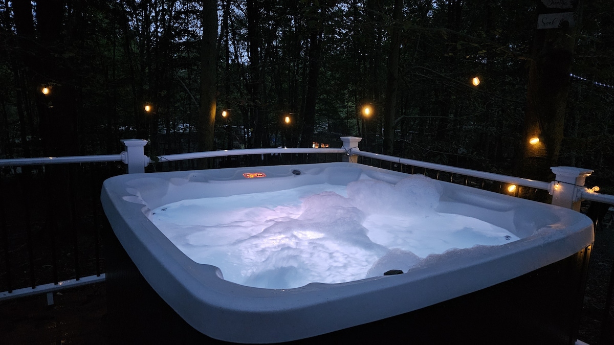 A truly unique stay in the Pocono Mountains, home to rolling mountain terrain, breathtakingly beautiful waterfalls, thriving woodlands, + 170 miles of winding river. Created with the “ultimate night in" themed experience, guests can sip wine under the stars in a private hot tub, + enjoy movies on their own 135" movie screen equipped w/ the world's first LED 4K gaming projector. Enjoy themed bedrooms and experience a stay where the forest takes you away as you stay in ultimate comfort + luxury.
