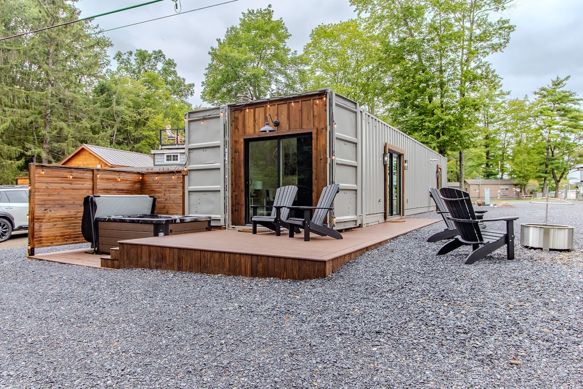 In the midst of the Seven Mountains Campground, is the Shipping Container tiny home! Experience luxurious amenities throughout the Tiny Home. Relax in the custom-designed Shipping containor or relax in the outdoor seating area/Hot Tub, all while being surrounded by an atmosphere only The Seven Mountains Campground has to offer! This is perfect for drinking your coffee on the deck and enjoying nature.