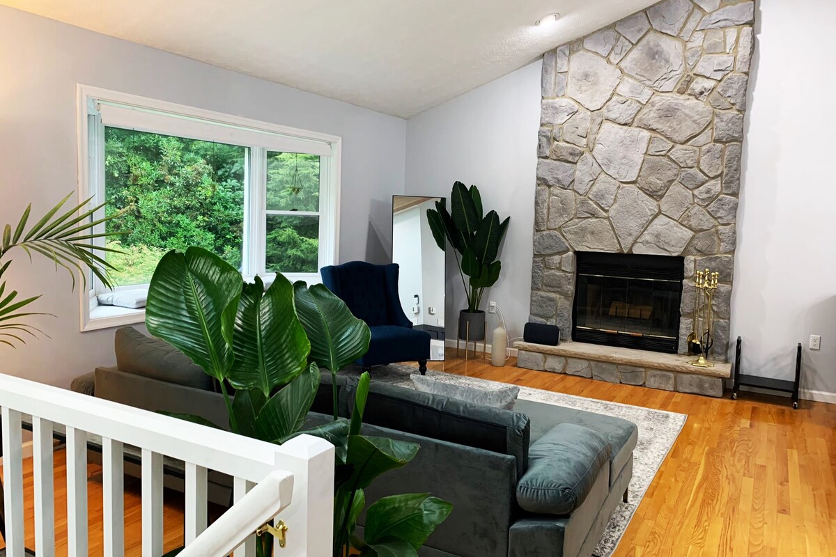 Unwind at our modern Pocono! Just 15 minutes from Camelback Resort, Kalahari Waterpark, The Crossings Outlets, and Mountain View Vineyard. This 3-bedroom, 3-bath home features an office, indoor fireplace, and a lush patio perfect for BBQs. Ideal for family vacations or relaxing getaways, this serene escape has everything you need to recharge. Breathe in the fresh air and discover your new favorite hideaway