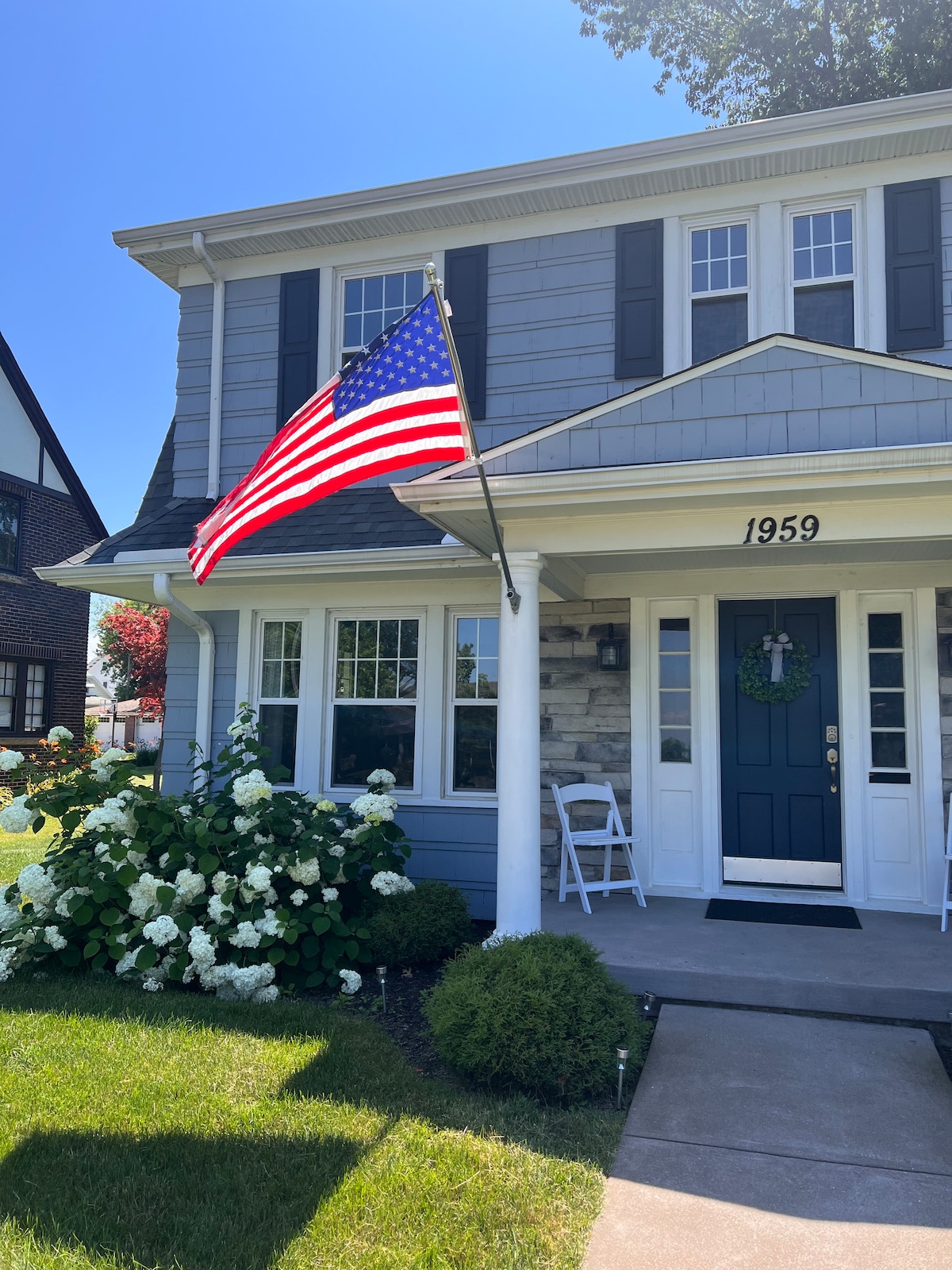 蓝色的房子,可欣赏湖景,靠近海滩!