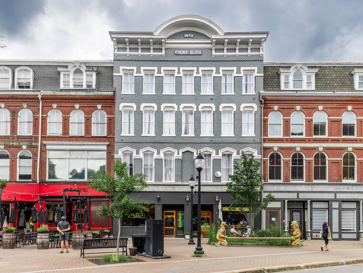 1873 historic hotel that sits in the heart of downtown Bangor. Just steps from fantastic restaurants, breweries, & coffee shops! 1/2 mi. to amphitheater *10 minute walk* 43 mi. to Acadia Nat'l Park 3 mi. to Airport 3 min. walk to Zillman Art Museum KEY FEATURES: ☀ King-size bed w/ high end Centium Satin linens ☀ High Speed Fiber Internet ☀ 50” Roku TV w/ HULU + ☀ Desk ☀ Free Laundry in building ☀ Coffee Shop on ground floor ☀ Walking distance to Amphitheater, dining, & drinks!