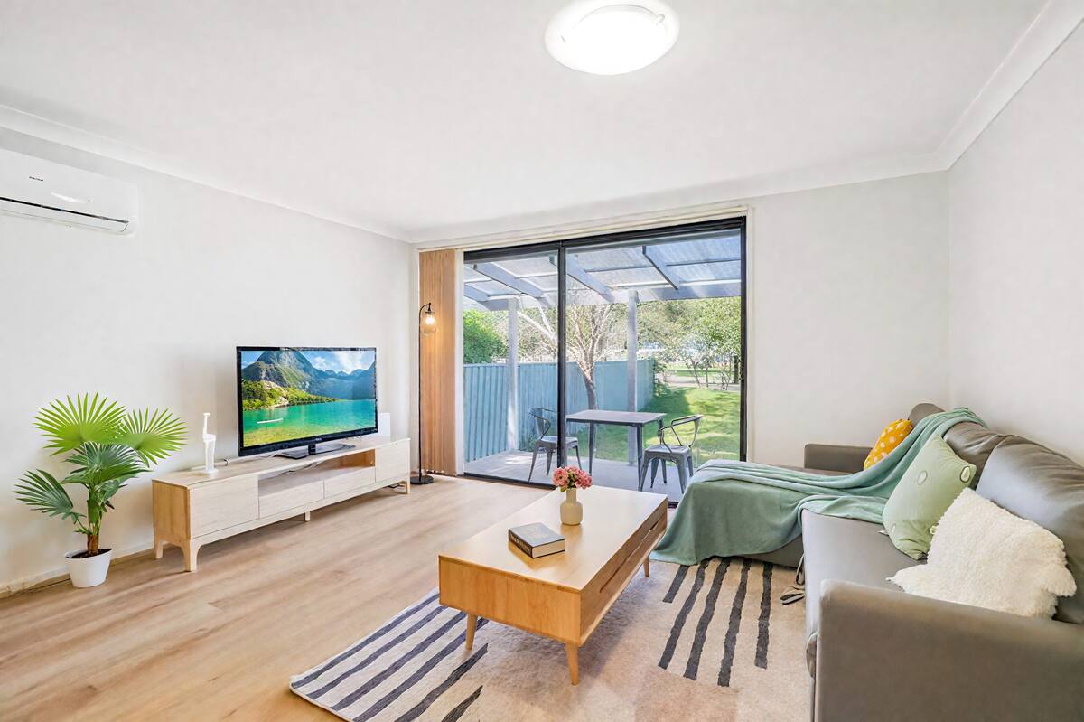Family-friendly Retreat near the Blue Mountains & Nepean River with Reserve. This newly renovated house offers an immaculately styled lifestyle. Contemporary interiors and abundant natural light combine to provide an outstanding home ideal for those looking for space, relaxation and luxury. Great for families, friends, groups, holidaymakers, and entertainers, this year-round home is available for long- and short-term rental. Easy M4 & A9 Access. Strictly no party and Non smoking !!