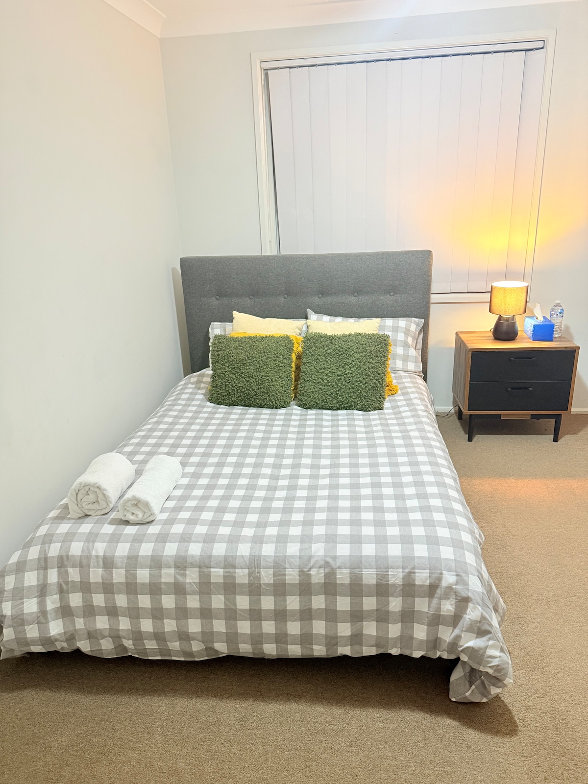 You'll have your own bedroom, but you'll share the kitchen, living room, and bathroom with other guests. Three additional bedrooms are available if you're looking for more. Located in Penrith's central business district, the house is close to the Nepean River, Sydney International Regatta Centre, and Whitewater Stadium. It's a 5-minute walk to the train station, Westfield Shopping Center, and restaurants. The house comes with double parking and is spacious and quiet.