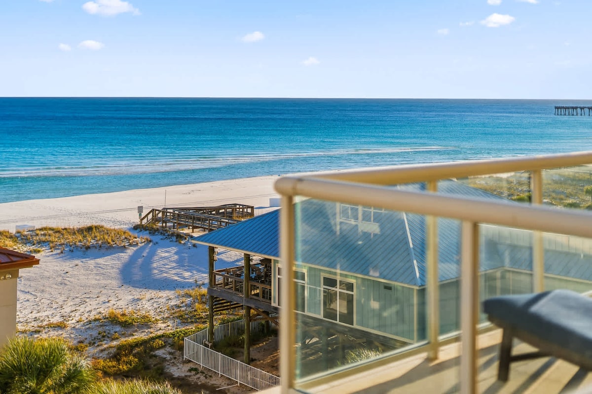Welcome to Pensacola Perch, an 8th floor beachfront condo where you will enjoy expansive views of Pensacola Beach–– a perfect vantage point for dolphin sightings & the Blue Angels Air Show. This 2BR/2BA condo is in the sought after Emerald Isle gated resort where guests can enjoy resort amenities such as direct beach access, 2 swimming pools, a hot tub, sauna, & beachfront fitness center. There’s also complimentary use of 2 chairs & an umbrella from La Dolce Vita all through March to October.
