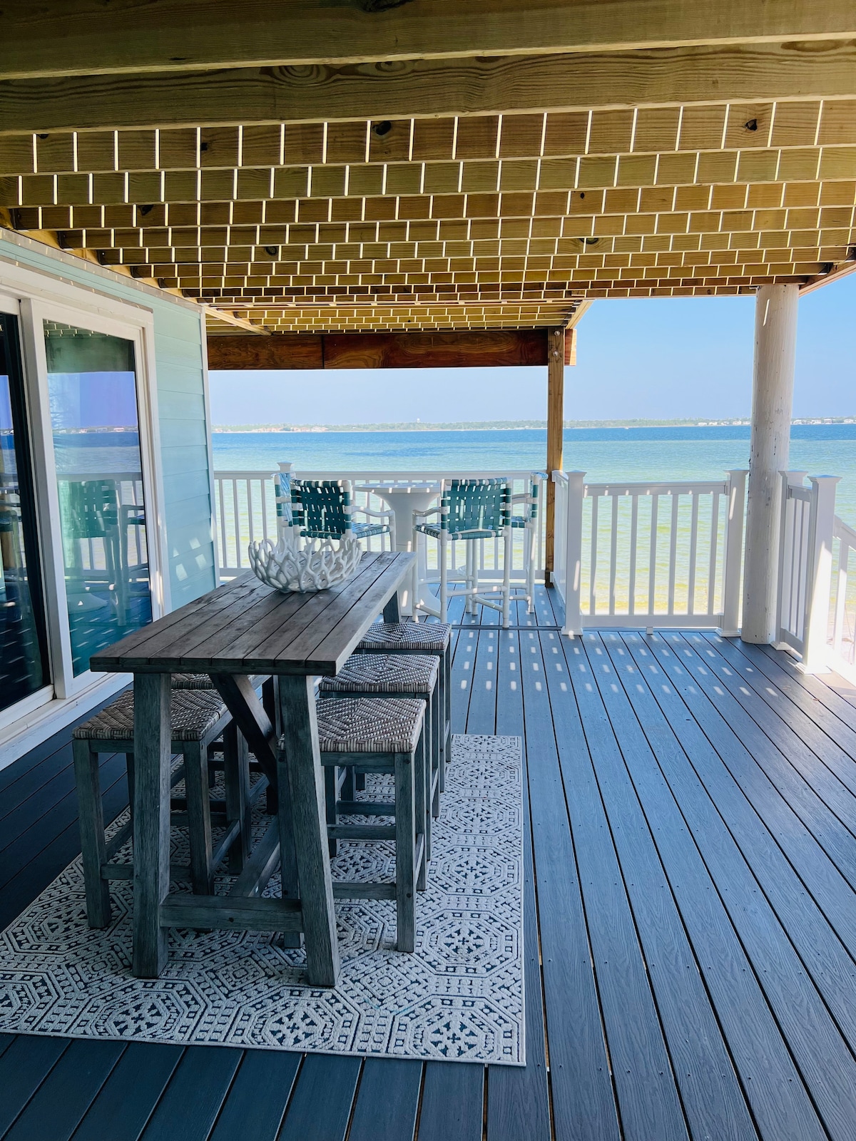 This family friendly coastal beach vacation rental located on the “sound side” just footsteps from the sand and water, offers calm waterfront access, a large backyard, and premium included amenities such as paddleboards, kayaks, bikes, cooler, beach chairs, towels, blanket, fishing poles, BBQ grill. Walkable to restaurants, beach bars, food trucks, and park, with Navarre Beach and the longest pier minutes away. Enjoy breathtaking views, sunrises, stunning sunsets, and frequent dolphin sightings.