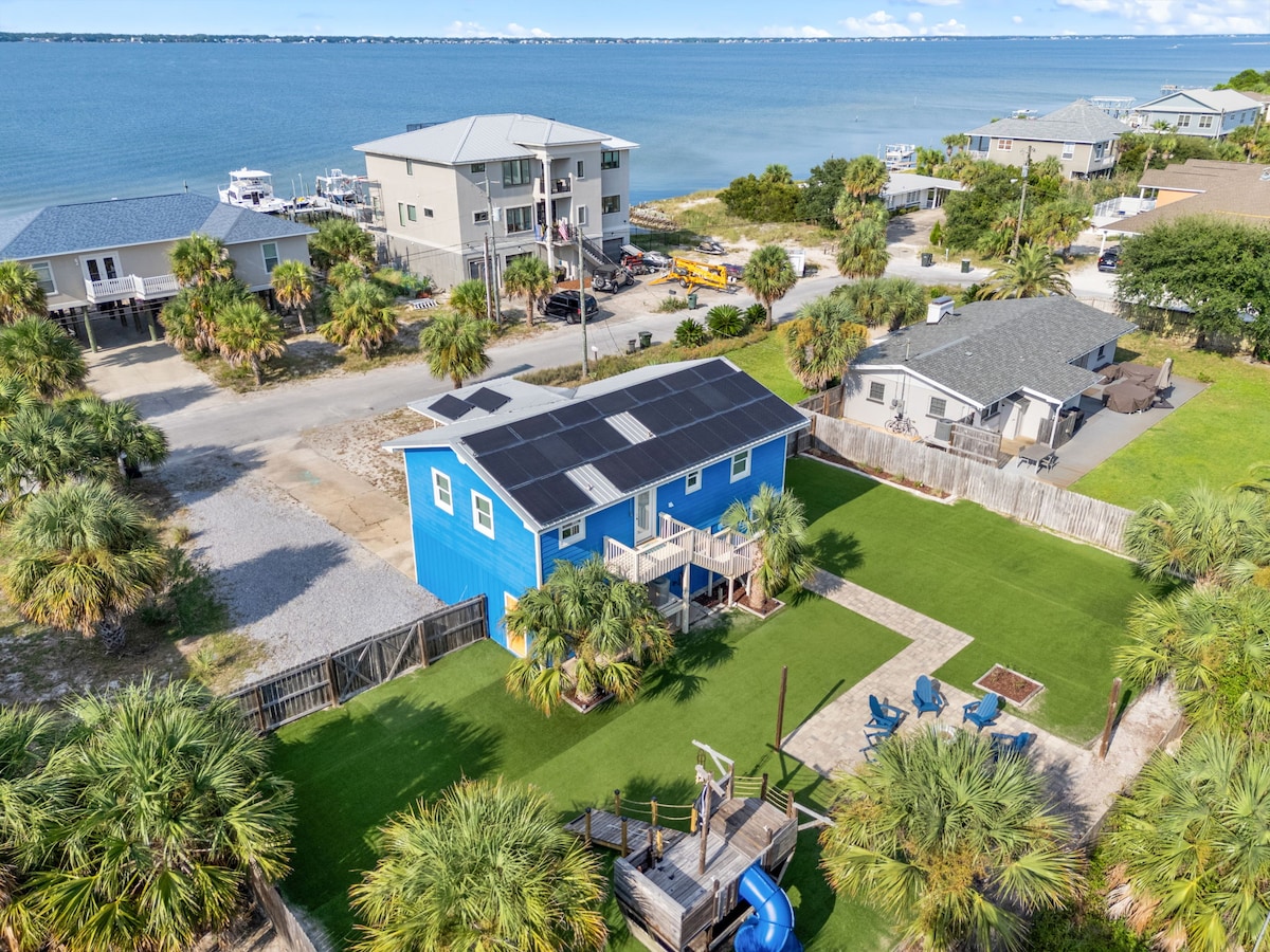 This family friendly coastal beach vacation rental located on the “sound side” just footsteps from the sand and water, offers calm waterfront access, a large backyard, and premium included amenities such as paddleboards, kayaks, bikes, cooler, beach chairs, towels, blanket, fishing poles, BBQ grill. Walkable to restaurants, beach bars, food trucks, and park, with Navarre Beach and the longest pier minutes away. Enjoy breathtaking views, sunrises, stunning sunsets, and frequent dolphin sightings.