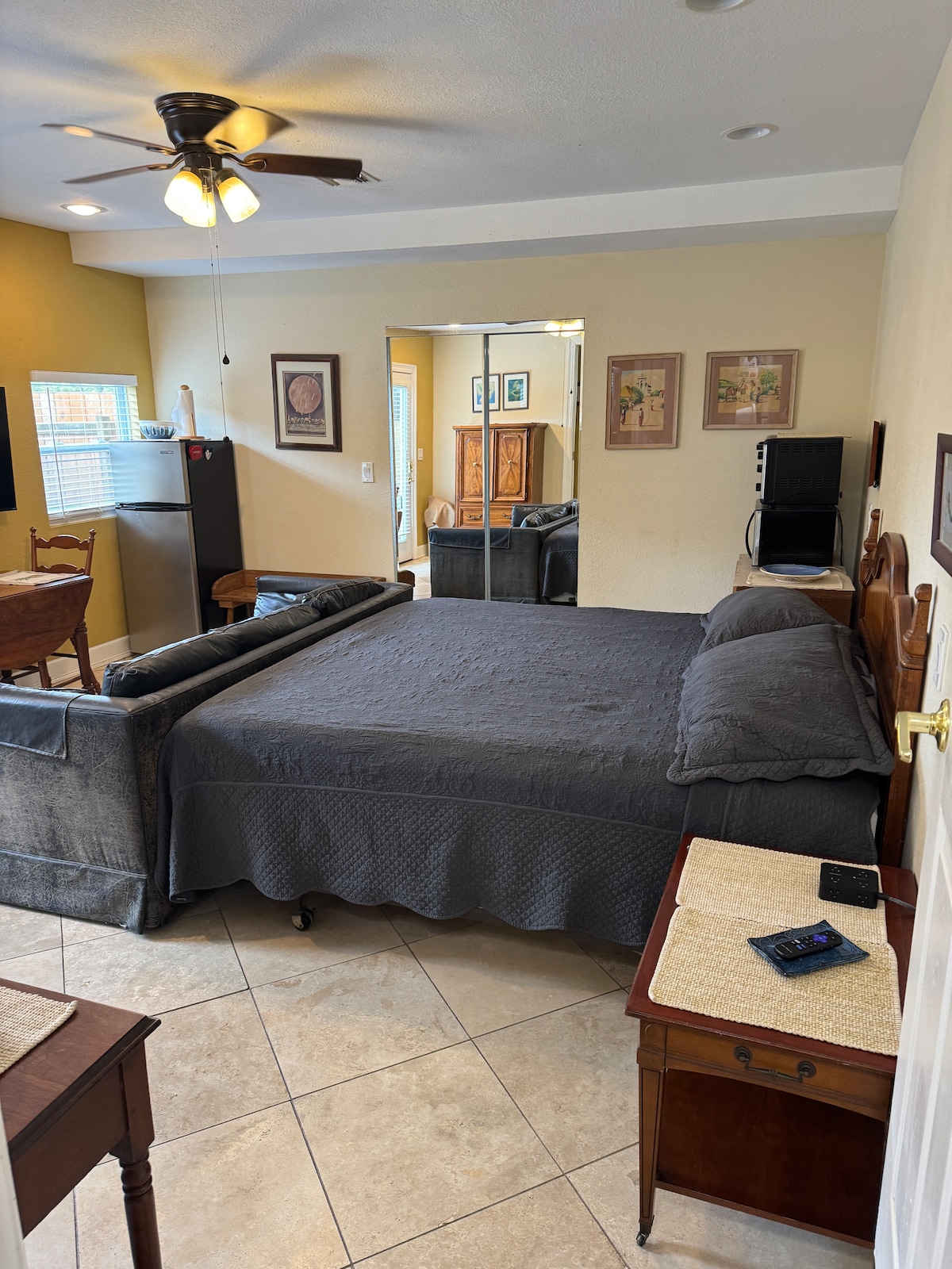 Centrally located, over sized in-law style guest suite. Minutes to the airport, Bay Center, downtown- easy drive to Pensacola Beach and Naval Air Station. One true bedroom with a large bathroom, large living room with kitchenette, TV, wifi, queen sized sofa bed with memory foam mattress. Outside smoking area. Private entry and parking located at the rear of the home. Owners live on site in completely separate, but attached quarters. THIS LISTING DOES NOT ALLOW ANIMALS DUE TO OWNER ALLERGIES.