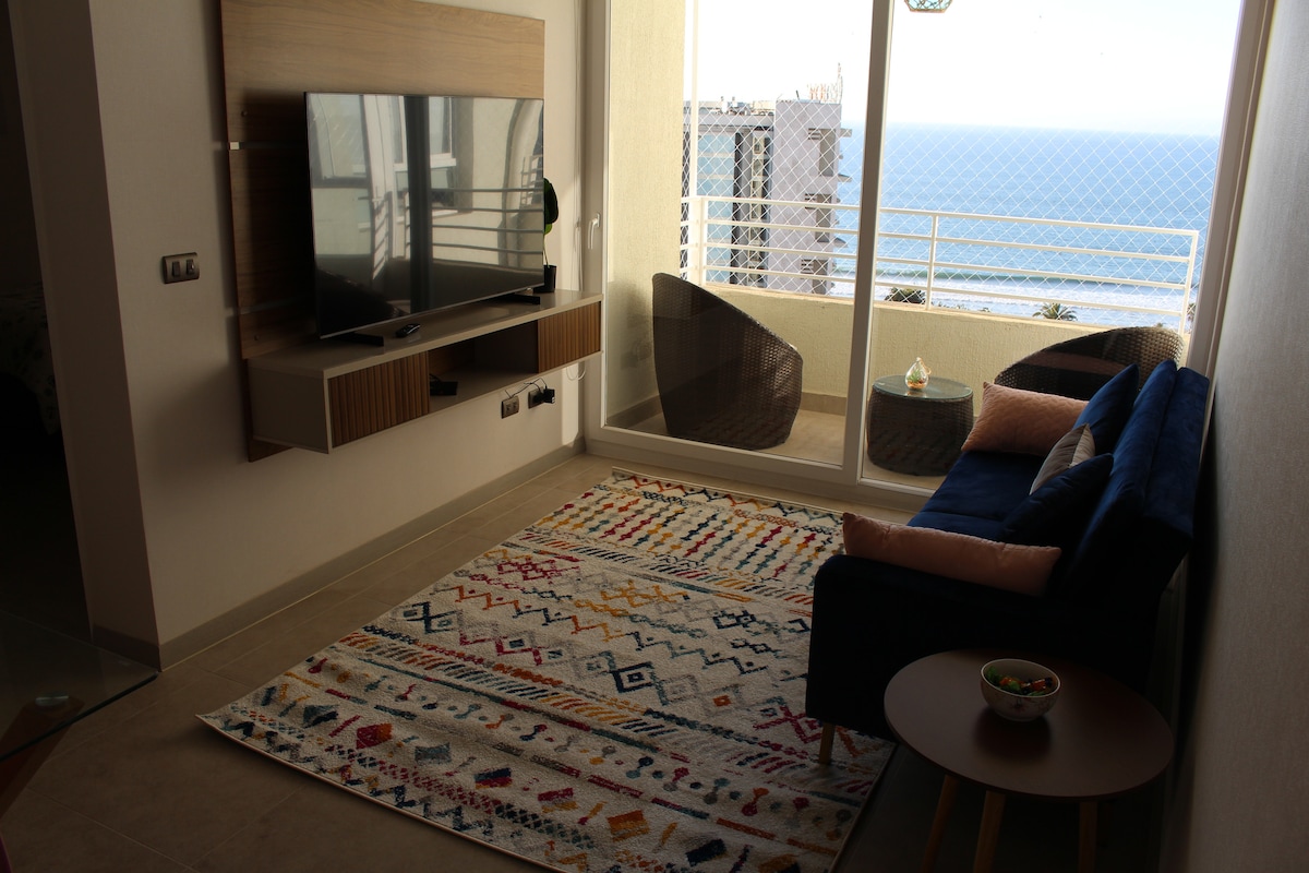 Departamento ubicado en Avenida del Mar de la ciudad de La Serena, en un tercer piso, a 470 kilómetros de la capital de Chile, Santiago Desde su terraza podrás ver el azul del mar y las más preciosas puestas de sol. Tienes una extensa playa para disfrutar caminando o bañándote y encontrarás muy cerca buenos restaurantes y el Cacino Enjoy de Coquimbo. Puedes disfrutar de piscina exterior y un lindo prado. El equipamiento del departamento además de la cama de dos plazas cuenta con sillón cama.