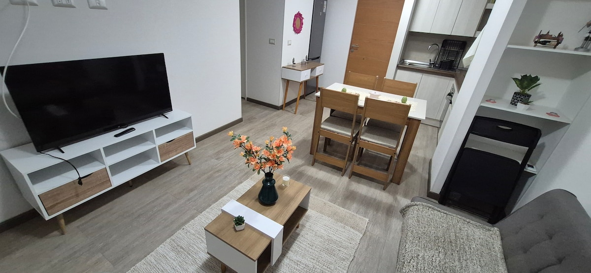 Exclusivo departamento, moderno, cómodo y seguro. Ideal para una grata estancia de viajeros de paso o escapada. Se encuentra en el piso 15° con una vista panorámica inigualable, amplio balcón. Estacionamiento al interior del recinto, Wifi, gimnasio, quincho, piscina. Lavandería (con tarjeta de prepago). A pasos de Hospital San Pablo, UCN, Estadio Francisco Sánchez Rumoroso, Mezquita.