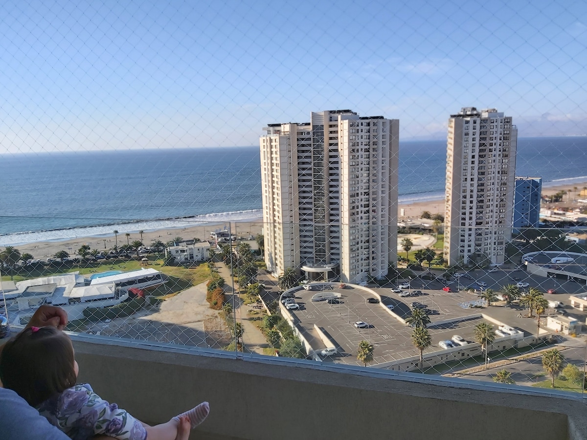 Espectacular departamento en primera linea con vista directa a la playa y toda la bahía. Ubicado en condominio Brisamar. Cercano a casino Enjoy, supermercados, restaurantes de primer nivel y típicas picadas. El departamento está totalmente equipado, para que solo te relajes escuchando el mar durante tus vacaciones. Se encuentra en el piso 20, tiene instalada malla de seguridad en el balcón y en ventanas para mayor seguridad. Estacionamiento techado, gimnasio, sala de estar, seguridad 24 hrs.