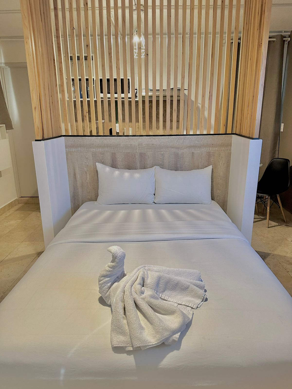 Hermoso Departamento con amplia terraza, limpio y muy acogedor. la construcción es nueva, así como los muebles que hay en su interior. el departamento es de concepto abierto, solo hay un biombo que separa el área del dormitorio con la sala, para dar un poco de privacidad. Hay un sofá cama, tamaño matrimonial, en la sala El departamento tiene amplias ventanas que brindan una excelente iluminación. y cuenta con una linda terraza, rodeada de plantas.