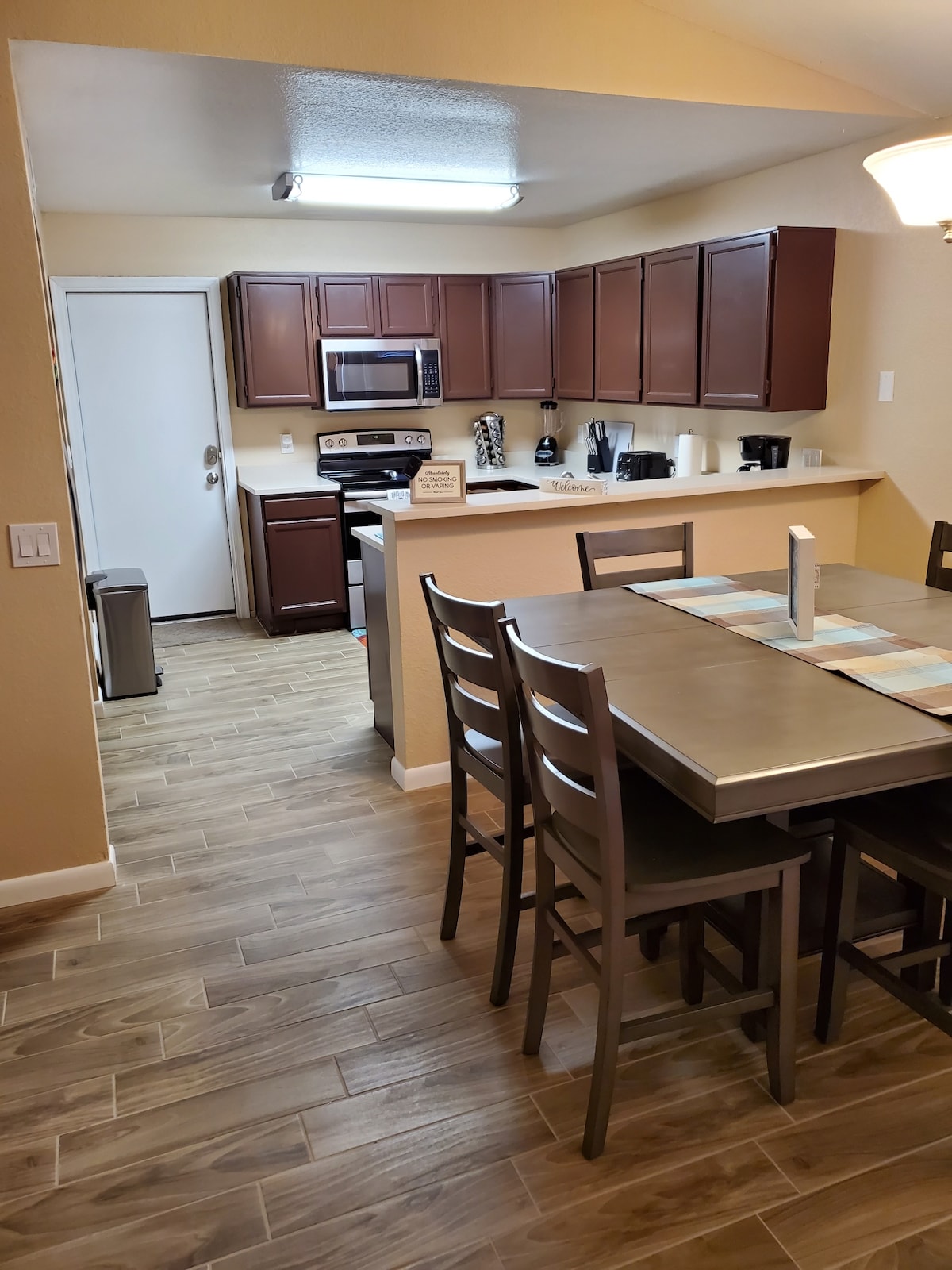 This modern casita has all the comforts you need for a memorable stay! Step inside to discover a space with all of the essentials. The open-concept seamlessly connects the living room, dining area, and kitchen, creating a welcoming atmosphere for relaxation and socializing. Step outside to your own private back porch, fully fenced in for your peace of mind and privacy. Whether you're sipping your morning coffee or stargazing in the evening, this tranquil oasis is the perfect spot to unwind!!