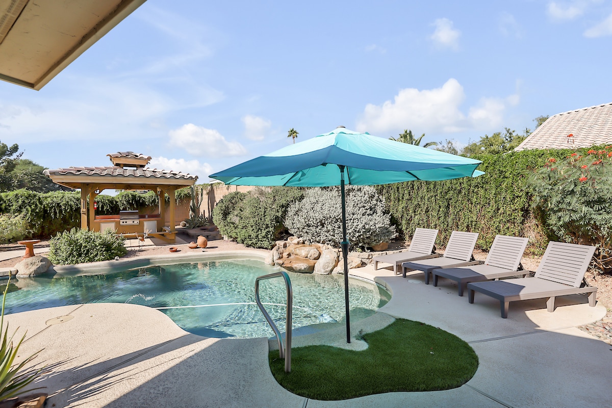 Welcome to the luxurious 3BR 2Bath getaway nestled in the tranquil neighborhood of Peoria, AZ. Escape the big-city crowds and enjoy the mesmerizing ambiance of the backyard with the swimming pool and many relaxing and fun amenities while being close to numerous resort attractions, landmarks, and activities. ✔ 3 Comfortable BRs ✔ Open Design Living ✔ Full Kitchen ✔ Game Room ✔ Backyard (Pool, BBQ, Putting Green, Gazebos...) ✔ Smart TVs ✔ High-Speed Wi-Fi ✔ Free Parking Learn more below!