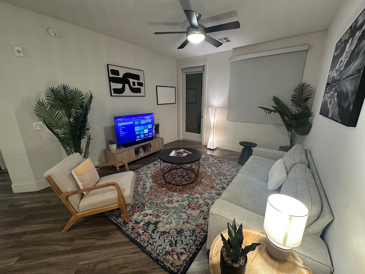 Welcome to our 1 bed 1 bath apartment, in the heart of downtown Phoenix! Our apartment is perfect for solo travelers or couples looking to explore the vibrant city. Enjoy our stylish living room, fully equipped kitchen and comfortable bedroom. You'll be in a vibrant and busy neighborhood, next to all the best restaurants, bars, and attractions that Phoenix has to offer. Next to Roosevelt Row ✔ Fully Equipped Kitchen ✔ Comfortable Bedroom w/ Queen Bed ✔ Office Desk ✔ Wi-Fi ✔ Free Garage Parking
