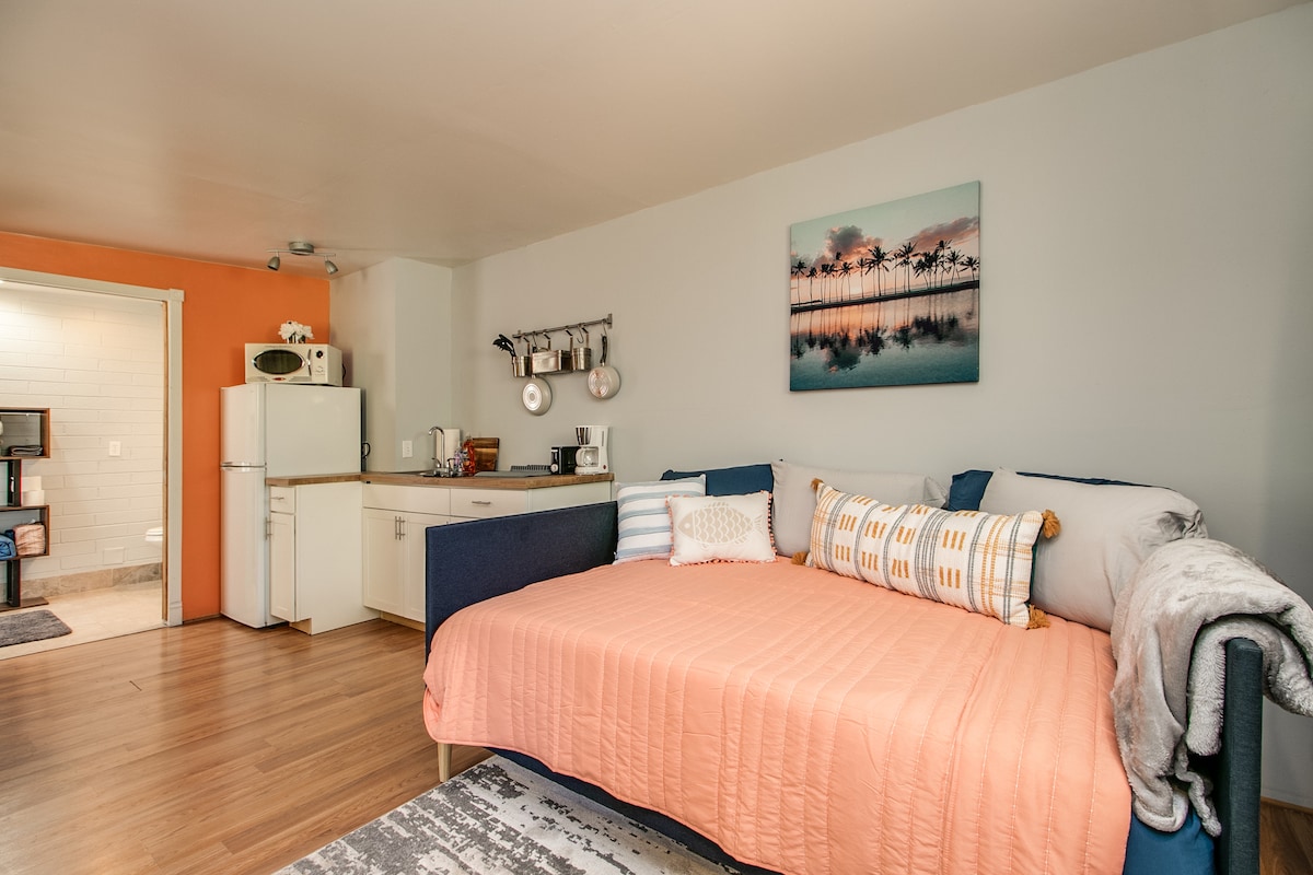 Step into a beautiful pink AZ sunset at Sky Harbor Suite, a unique studio w/the amenities of a hotel room plus private keyless entry, patio, & grill. Free street parking, A/C, king bed, & Keurig w/kitchenette accompany this desert-themed artsy escape perfect for quick trips & layovers. Though this listing is NOT walking distance to Downtown, you'll be a 5 min. drive to Sky Harbor Airport, Chase Field & Downtown Phoenix. Skip the hotel fees and stay at the closest 'bnb to the airport!