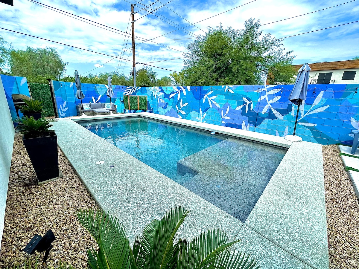 Low Cleaning Fee! Super fun luxury property! PERFECT location! Dreamy private heated pool (heating included), chef’s kitchen, two King beds and four bunk beds. Walk to Starbucks (and other spots). Take photos with the custom murals! Four HD Smart TVs! Property is modern and spacious enough for any size group! Family owned, operated and meticulously cared for. The neighborhood is super chill & convenient to everything! Super low fee! Read our reviews! We Care! @GoodVibesScottsdale