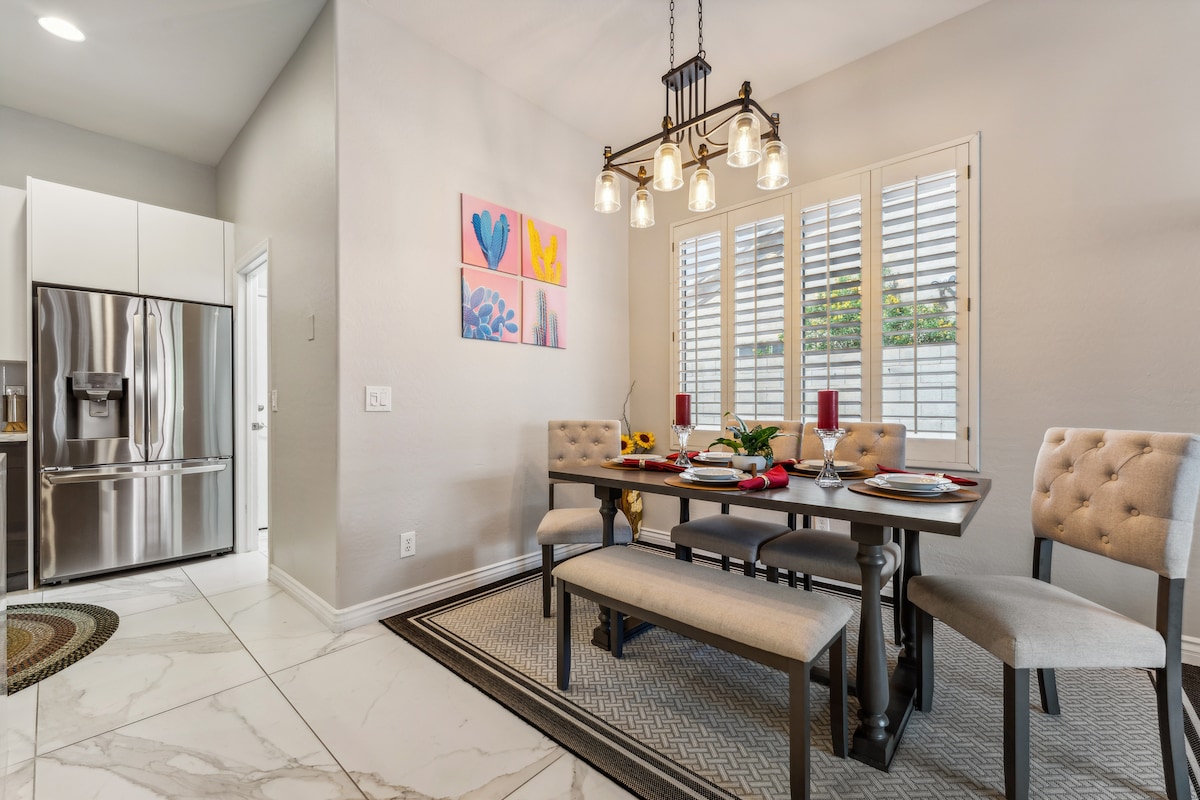 Experience the beauty of Arizona’s Sonoran Desert at this 3-bedroom, 2.5-bath home located in the Arrowhead Ranch area of Glendale. Our beautiful home is perfect for a relaxing getaway and is just a short drive to golf courses, fantastic restaurants, parks, only 10 minutes to Westgate, AZ Cardinals stadium, as well as the Seattle Mariners and LA Dodgers spring training facility. We have a space that caters to your group's every need. Perfect for long-term stay